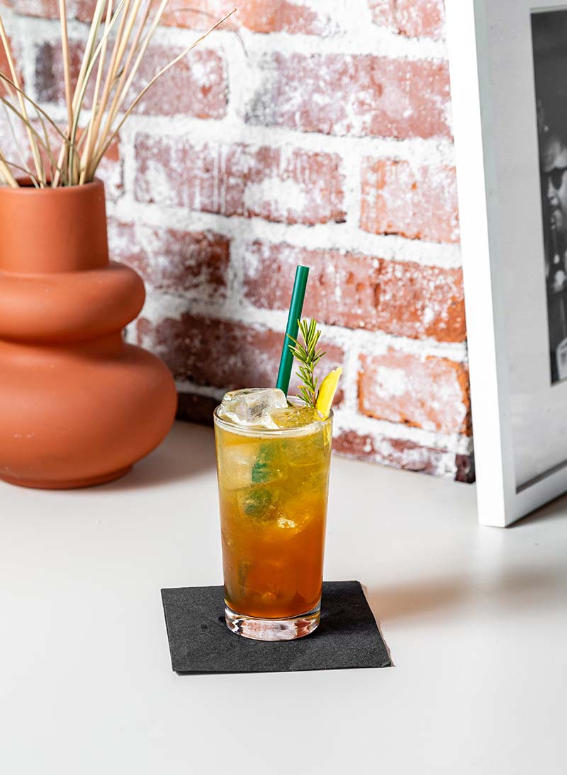• In a tall Collins glass, combine amaro, elderflower liqueur, lemon juice, and Prosecco with ice and stir. Top with soda water, and garnish with a rosemary sprig.