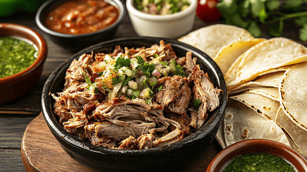 - Cook in slow cooker for 8 hours on low or in Dutch oven, or inside 325 degree F oven for 2 to 3 hours. If using oven, check meat occasionally to be sure chili isnโt boiling and that there is enough liquid; add more chicken stock or lower temperature if needed. When cooking is complete, shred pork and return to liquid to keep warm.