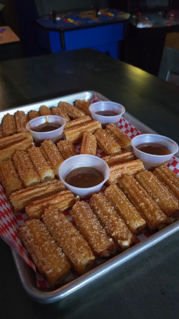 - Churro Dessert: cream cheese filled, cinnamon sugar, and caramel dipping sauce
