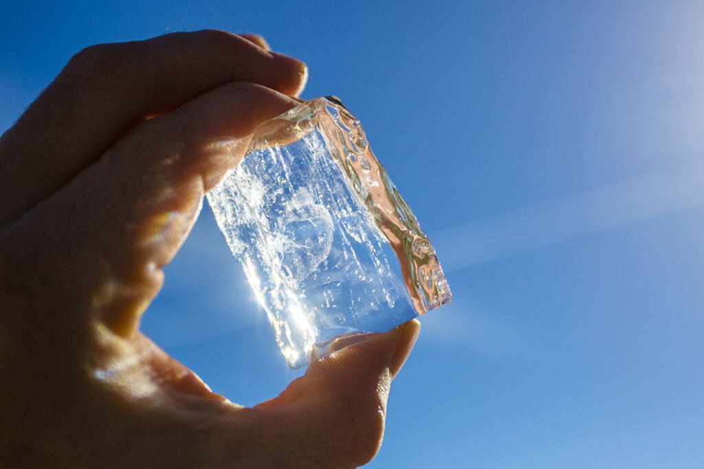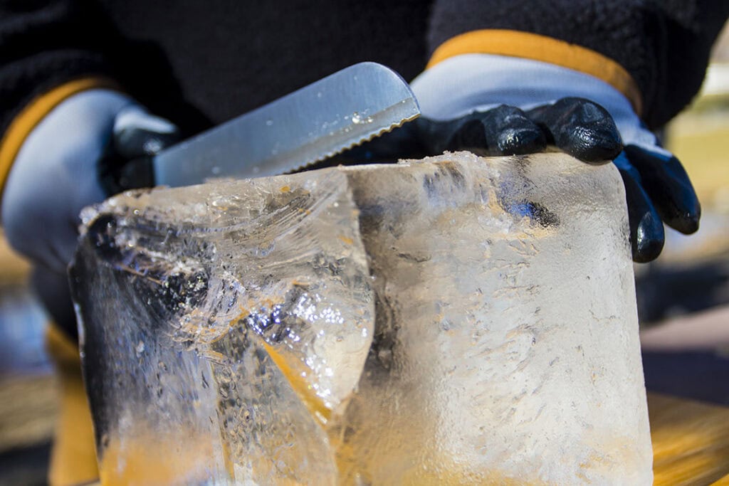 - Trim away any white ice that might have collected at the bottom or corners of the ice block. Then cut to the size you want.