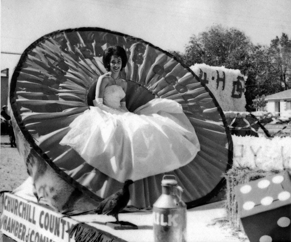 Churchill County Chamber of Commerce was represented in the shape of a cantaloupe at this parade, with Gail Friberg sitting atop the float