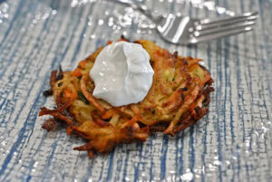 Langer says that the Hanukkah version is strictly made with potatoes, but she has seen some variations of the latke made with sweet potatoes, zucchini, carrots, and zaโatar, a Middle Eastern spice blend.