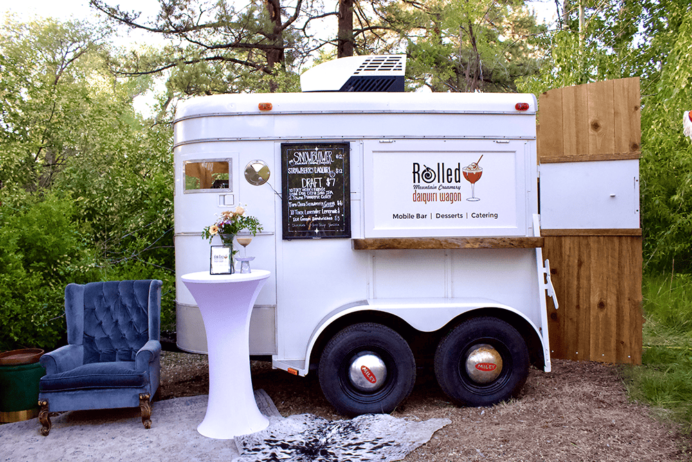 What do you get when you combine a vintage horse trailer with the best daiquiris around? The Rolled Daiquiri Wagon, catering across the Reno-Tahoe area. This trailer, outfitted with wood accents that hint at the charm of Old Reno, is kitted out with a mobile bar that serves up frosty and delectable daiquiris in a variety of flavors and spirits. In particular, its signature drink is the Snowblower: a rich and chocolatey caramel daiquiri with sea salt caramel and decadent chocolate sauce.