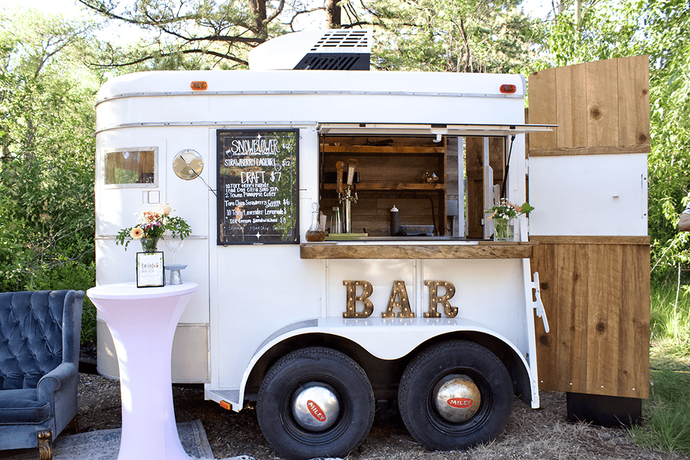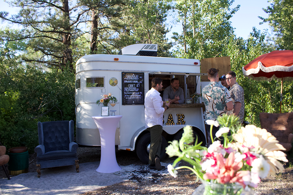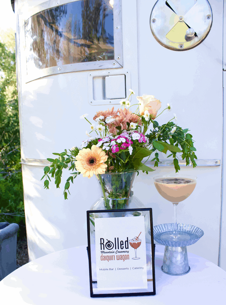A 1976 vintage Miley horse trailer mobile bar, aka: the Daiquiri Wagon! Home of the Snowblower! A down right delicious frozen daiquiri featuring Dorinda’s Chocolates FAMOUS Sea Salt Caramel Sauce, bourbon, Rolled: Mountain Creamery oat milk ice cream, and Crème de Cacao! This trailer, outfitted with wood accents that hint at the charm of Old Reno, is kitted out with a mobile bar that serves up frosty and delectable daiquiris in a variety of flavors and spirits.