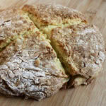 Transfer dough to center of baking sheet, on the flour, and press gently to form a 7½-inch-wide round. Using a sharp knife, slash a cross ½ inch deep across the entire top of the loaf (according to Irish lore, this lets the fairies out), and dust top of loaf with reserved flour. Bake until bread is lightly golden and a tap on the bottom of the loaf sounds hollow, about 35 minutes. Wrap bread in a clean kitchen towel, prop against a windowsill, and allow to cool for more than 30 minutes — if you can stand to wait that long!
